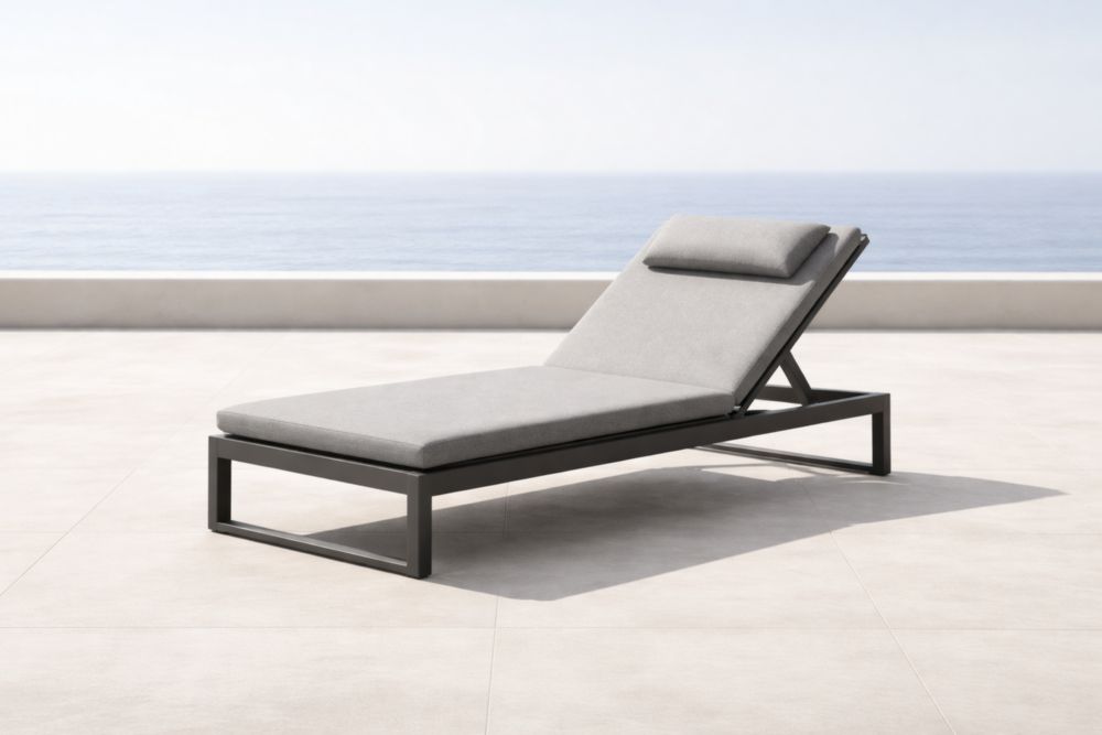 Chaise Longue en Aluminium Gris pour Extérieur avec Coussin en Polyester