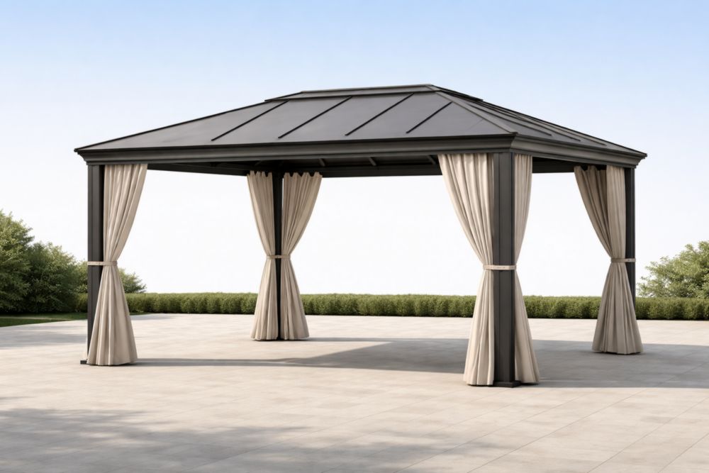 Pavillon de jardin en aluminium avec rideaux en polyester 4x3×2.7m